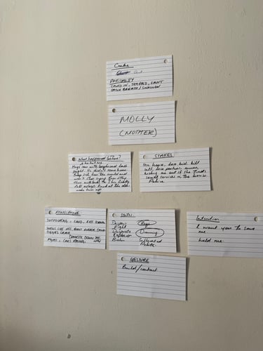 Thursday was finalising and writing down my character work - I'd done a lot of dreaming around the characters and their stories but it was time to put something down in writing.